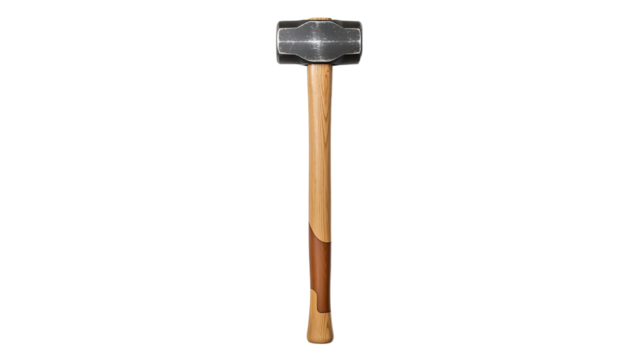 Hammer with Wooden Handle and Metal Head on White Background