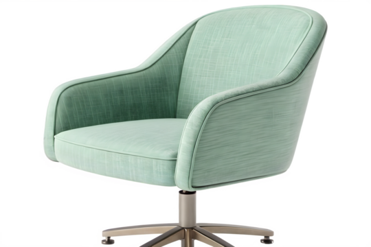 Modern teal swivel chair with armrests isolated on black background for design concept