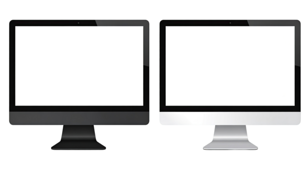 A modern flat panel computer monitor with a blank white screen displayed prominently on a sleek grey stand, perfect for showcasing software interfaces, websites, or digital presentations.