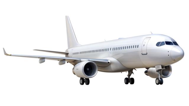 Commercial airplane isolated on transparent background, a symbol of modern air travel and global connectivity, showcasing its sleek design and powerful engines