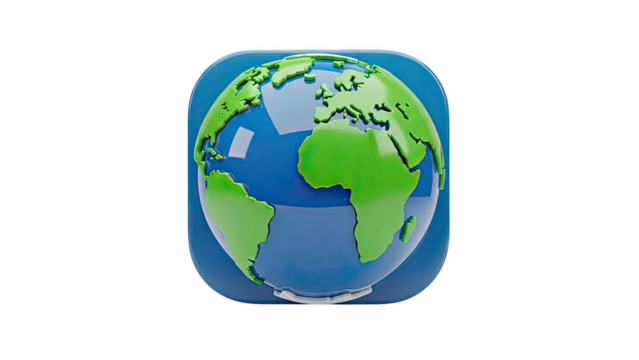 3D earth globe with leaves icon isolated on transparent background. Realistic eco-friendly and sustainability symbol, perfect for environment, ecology, green energy, nature, conservation.
