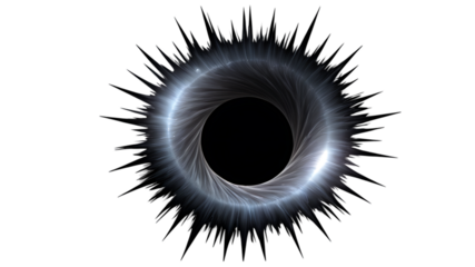 Abstract swirling vortex of light and energy with a black hole center isolated on transparent background