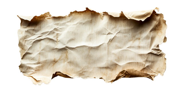 Old parchment paper, worn and creased surface appearance, cut out transparent