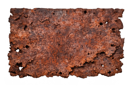 Rusty metal sheet texture creating an industrial grunge background with corrosion, isolated on a transparent background