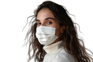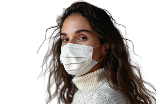 Brazilian woman wears protective mask against Covid on isolated transparent background