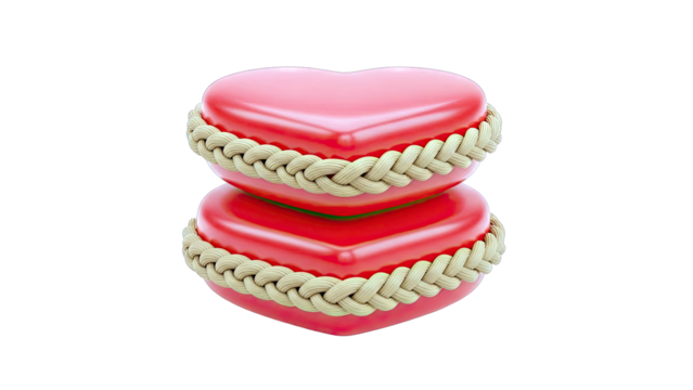 red braided heart shaped fabric isolated on transparent background