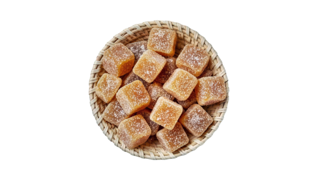 Golden Sugar Cubes in Woven Wicker Serving Basket.png