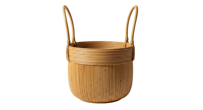 Isolated rattan basket with handles, woven texture, home goods, storage, bohemian decor