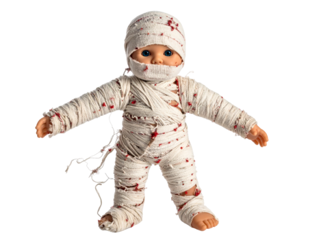Full body mummy costume representing undead mythology with intricate wrapping and spooky atmosphere isolated on white background PNG