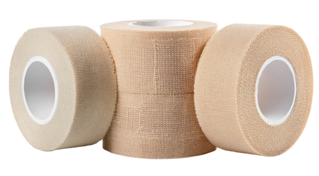 Three rolls of light beige athletic tape