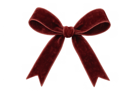 Red velvet ribbon bow adding a festive decorative element to gifts and celebrations, isolated with a transparent background
