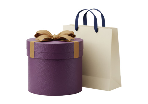 Isolated gifts. Holiday gift package and shopping paper bag for presents or birthday gifts
