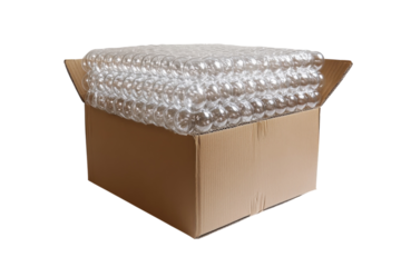 Delivery of bubble wrap rolls in a cardboard box for secure packaging and protection of items during shipping