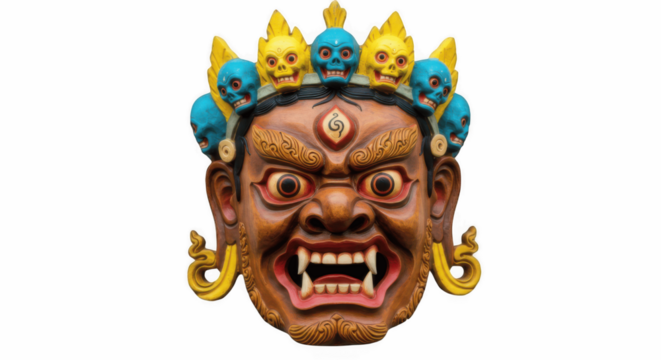 Furious Tibetan Mahakala Mask Isolated on Transparent PNG Background