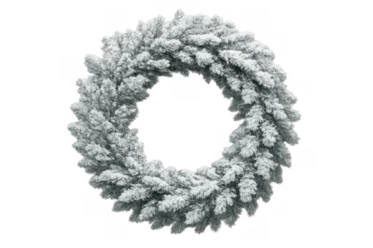 Snowy christmas wreath made of evergreen pine branches creating festive winter holiday decoration, transparent background