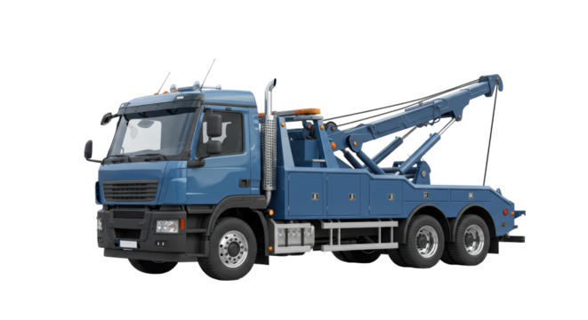 Blue Tow Truck on White Background for Recovery and Assistance