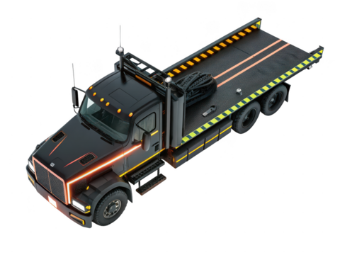 Black flatbed tow truck