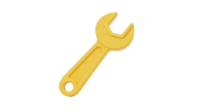 Yellow Plastic 3D Wrench Tool Icon, Maintenance Service, isolated on white background