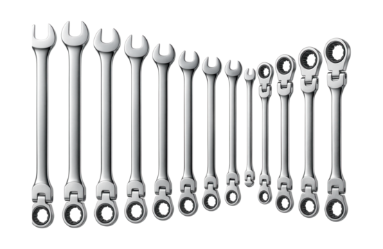 Chrome combination wrench tool on transparent background representing repair, maintenance, and expert craftsmanship