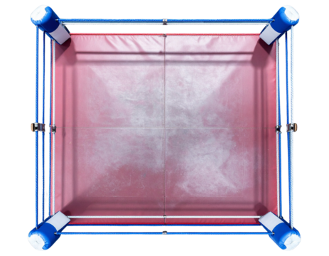 Top-Down View of Wrestling Ring with Red Mat and Corner Posts, isolated on Transparent Background