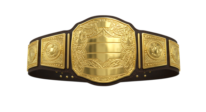Gold Championship Belt Rendering on Transparent Background for Sports or Achievement