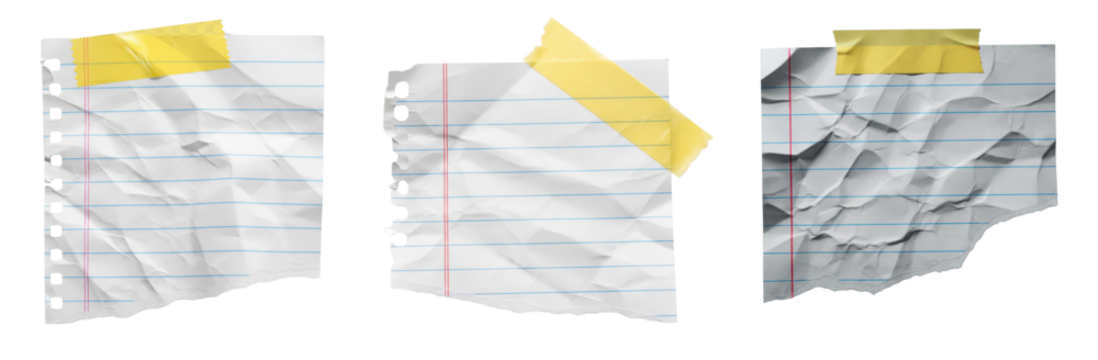 White crumpled paper texture background overlay effect. wrinkled and creased blank paper texture. on transparent background