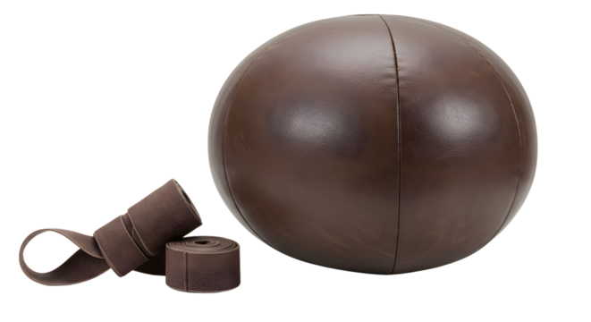 SPORT - Vintage brown leather medicine ball and wrist wraps set, gym equipment for strength training and rehabilitation exercises