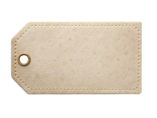 Rectangular kraft paper tag featuring a punched hole and a textured surface. It has perforated edges and is ideal for labeling, crafting, or gift decoration. Isolated on transparent background, png.