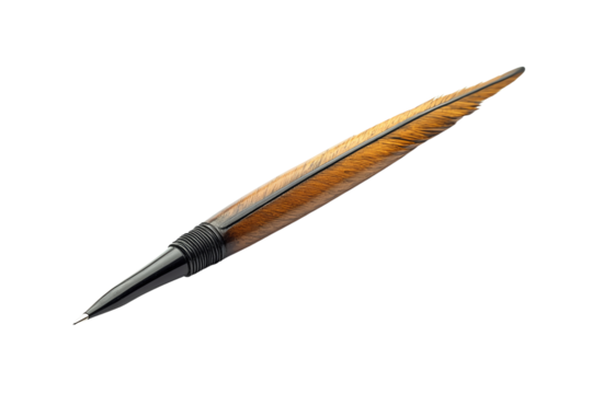 Stylish wooden pen with black accents on a white isolated background, perfect for showcasing elegance in writing instruments.