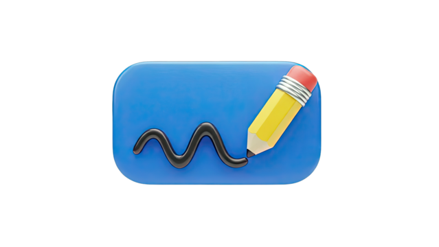 3D Icon: Pencil Drawing a Wavy Line on Blue Surface