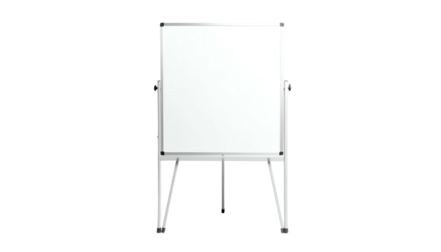 Office Flip Chart Board With Blank Sheet on Stand, Cut Out, Clipping Path, Isolated on a Transparent PNG Background.