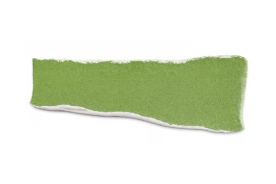 Torn green paper banner with rough jagged edges, isolated with transparent background, providing blank space for message