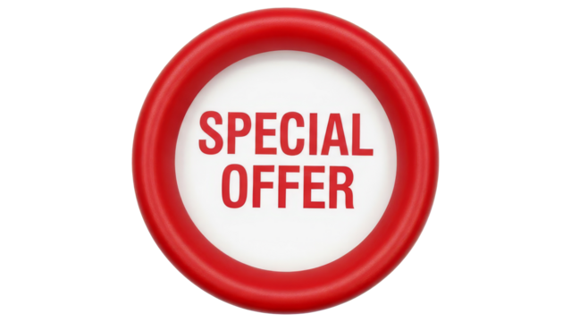 Bright red circular badge with special offer text for promotions and discounts, high quality special offer png photo
