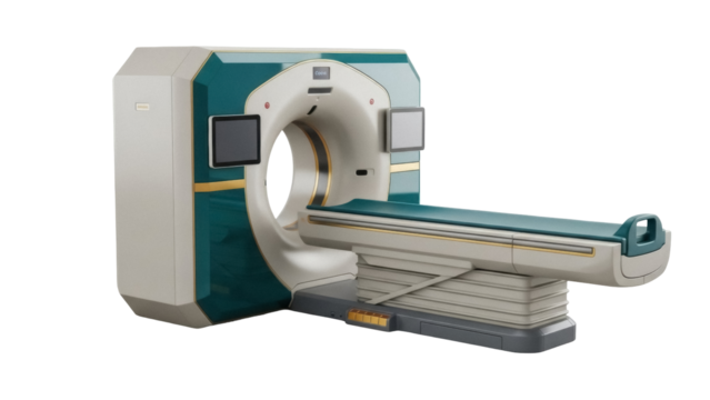 Medical imaging scanner machine, mri or ct equipment for hospital diagnosis, isometric illustration on transparent background