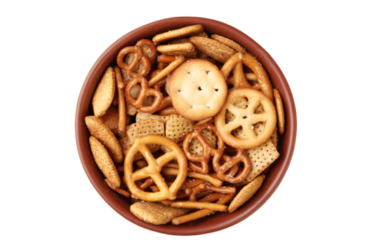 a bowl of pretzels and crackers with a cracker in the middle