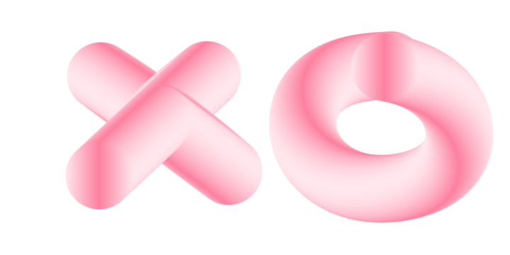 Soft 3D inflatable XO letters in gradient pink tones. Ideal for Valentine’s Day, romantic messages, social media graphics, greeting cards, and modern love-themed designs.