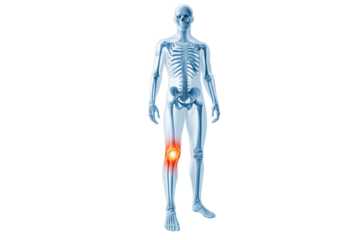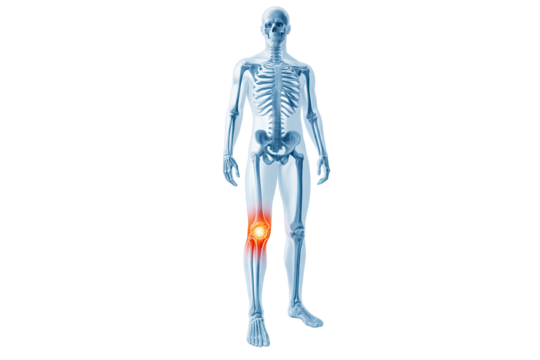 Human skeleton anatomy highlighting knee joint inflammation pain medical radiology orthopedic illustration diagnostic isolated on white background