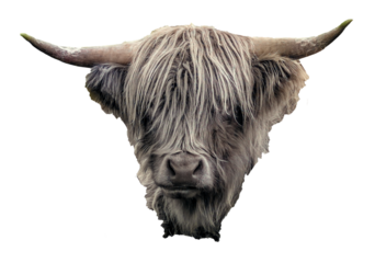 Long-haired yak with horns on transparent png background wildlife photography natural environment close-up view