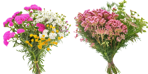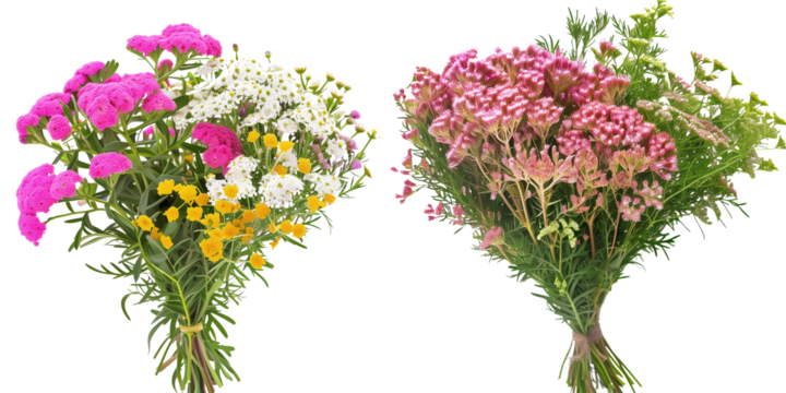 summer season flowers bouquet made with Yarrow isolated on transparent background