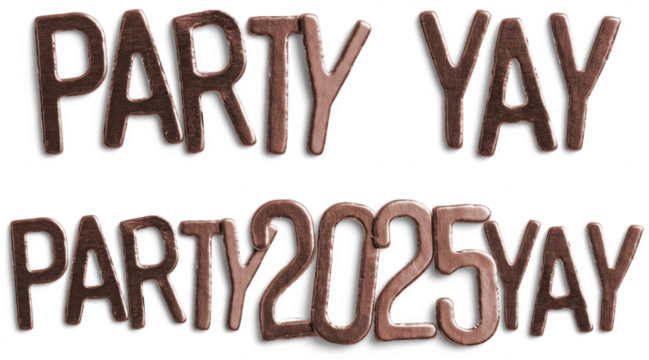 Copper Metallic Party 2025 Yay Text