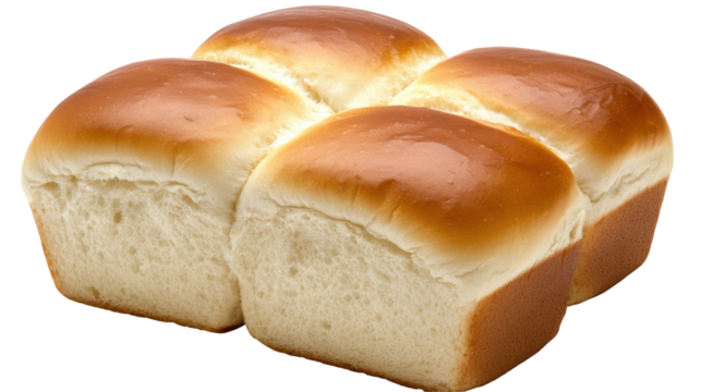Four Golden Soft Rolls of Freshly Baked Bread Arranged on a Transparent Background