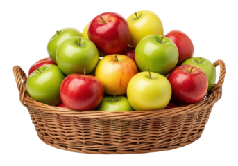 Woven basket filled with ripe red and yellow apples on a black background fruit wicker, Isolated On Transparent Background, Png Cut Out