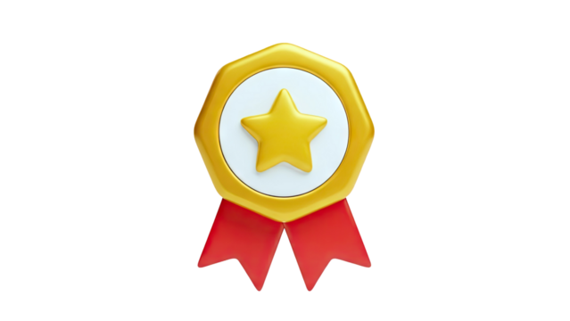 Golden Star Award Medal with Red Ribbons