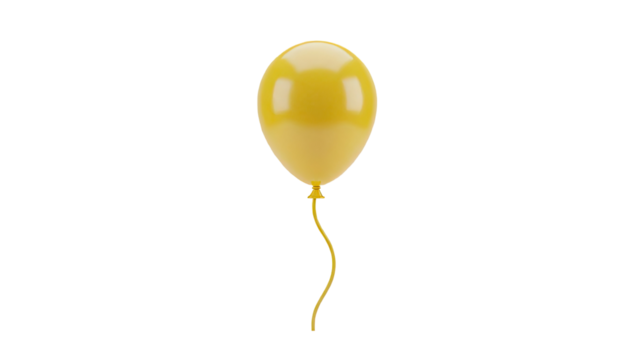 Single yellow balloon floating with transparent background