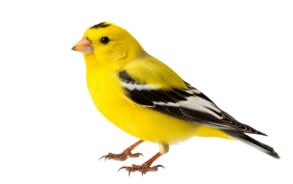 vibrant yellow bird with round body and bright eyes, perched gracefully
