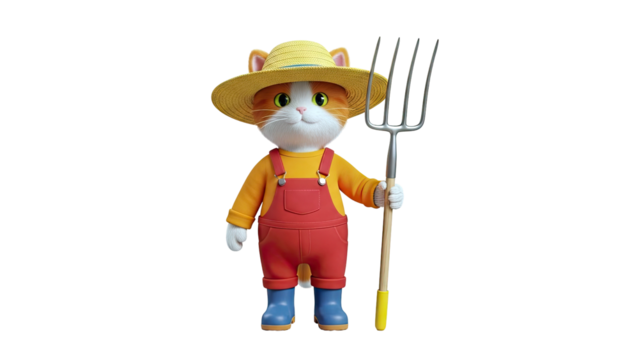 Cartoon Cat Farmer with Pitchfork