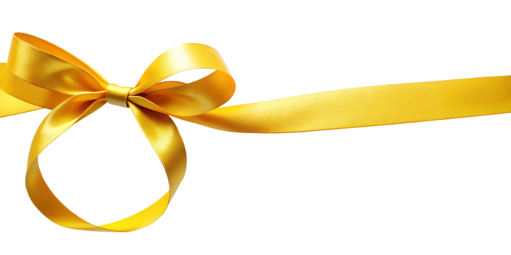 Yellow ribbon with bow on transparent background for gifts and crafts