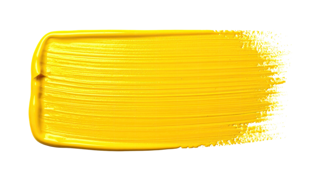 Vibrant yellow paint brush stroke texture with visible bristles and impasto effect isolated on transparent background