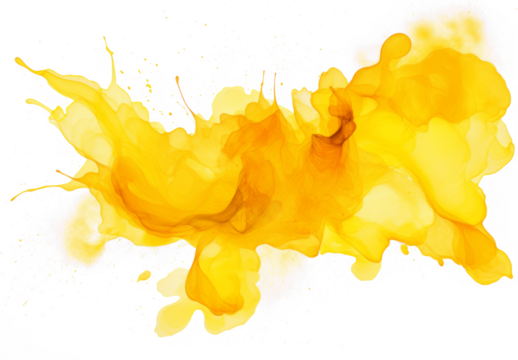 Abstract yellow paint on transparent background