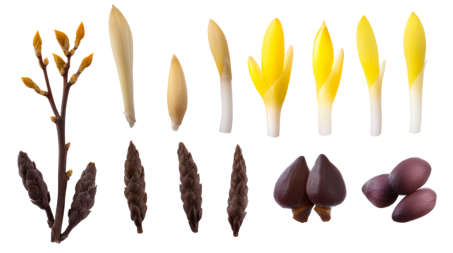 Edible buds and shoots on a transparent background